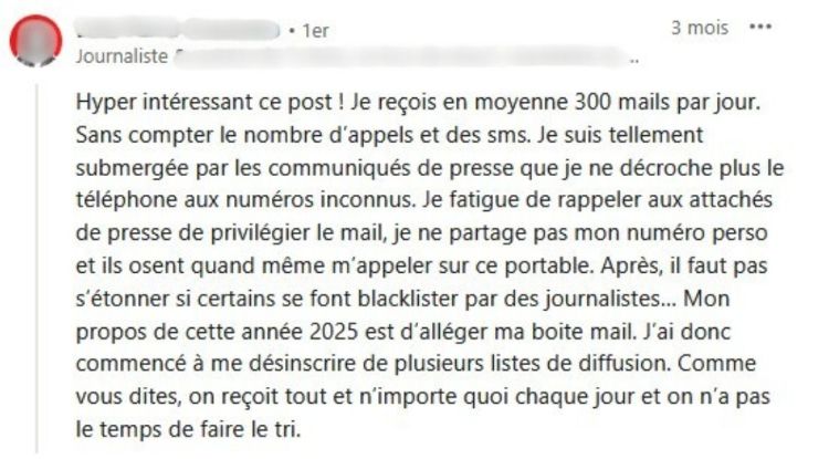 C’est pour cela que je fais un choix clair : pas de diffusion de masse, pas de messages génériques. Je privilégie une approche relationnelle, fondée sur la compréhension fine des attentes des journalistes et sur le respect de leur travail.