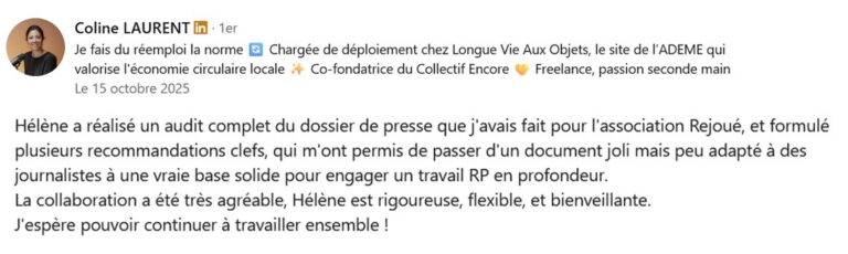 Vous avez une question précise sur vos relations presse et vous cherchez un regard extérieur, expert et bienveillant ? Je vous propose un audit flash d’une heure, pensé pour débloquer rapidement vos problématiques et repartir avec des conseils personnalisés et immédiatement actionnables.